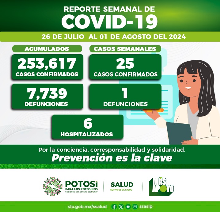 Del 26 de julio al 01 de agosto del presente año, se registraron 25 nuevos contagios de COVID-19 confirmando el Comité Estatal para la Seguridad en Salud y los Servicios de Salud 253 mil 617 casos totales de esta enfermedad.