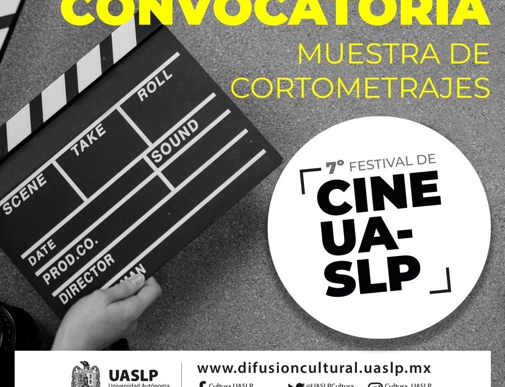 El 7º Festival de Cine UASLP, organizado por la Secretaría de Difusión Cultural de la Universidad Autónoma de San Luis Potosí, invita a las y los interesados a participar en la 4ta. Muestra de Cortometrajes, que se realizará en el mes de octubre del año en curso. La convocatoria cierra este viernes 9 de agosto y el registro no tiene ningún costo.