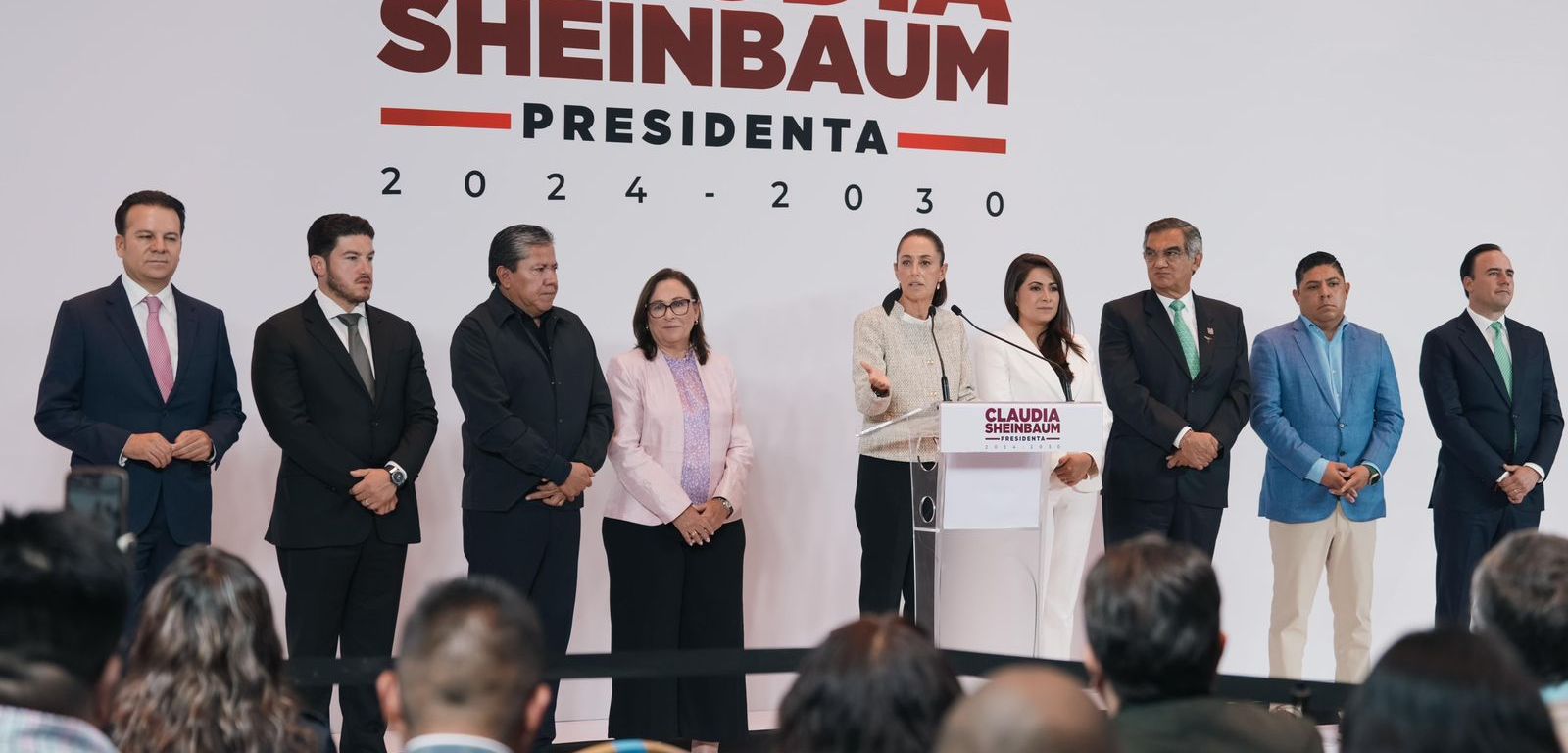 En conferencia de prensa, Claudia Sheinbaum estuvo acompañada de, María Teresa Jiménez Esquivel, gobernadora de Aguascalientes; Manolo Jiménez Salazar, gobernador de Coahuila; Esteban Alejandro Villegas Villareal, gobernador de Durango; Samuel Alejandro García Sepúlveda, gobernador de Nuevo León; José Ricardo Gallardo Cardona, gobernador de San Luis Potosí; Américo Villareal Anaya, gobernador de Tamaulipas; David Monreal Ávila, gobernador de Zacatecas y la gobernadora electa de Veracruz, Norma Rocío Nahle García.