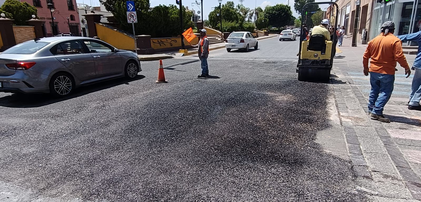 La cuadrilla de bacheo terminó de rehabilitar con material de mezcla asfáltica y gracias a la máquina jet patcher, un área de 100 metros cuadrados, por lo que la movilidad se vio mejorada para quienes ingresan al primer cuadro de la ciudad.