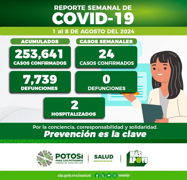 Del 2 al 8 de agosto del 2024, se registraron 24 nuevos contagios de COVID-19 confirmando el Comité Estatal para la Seguridad en Salud y los Servicios de Salud 253 mil 641 casos totales de esta enfermedad.