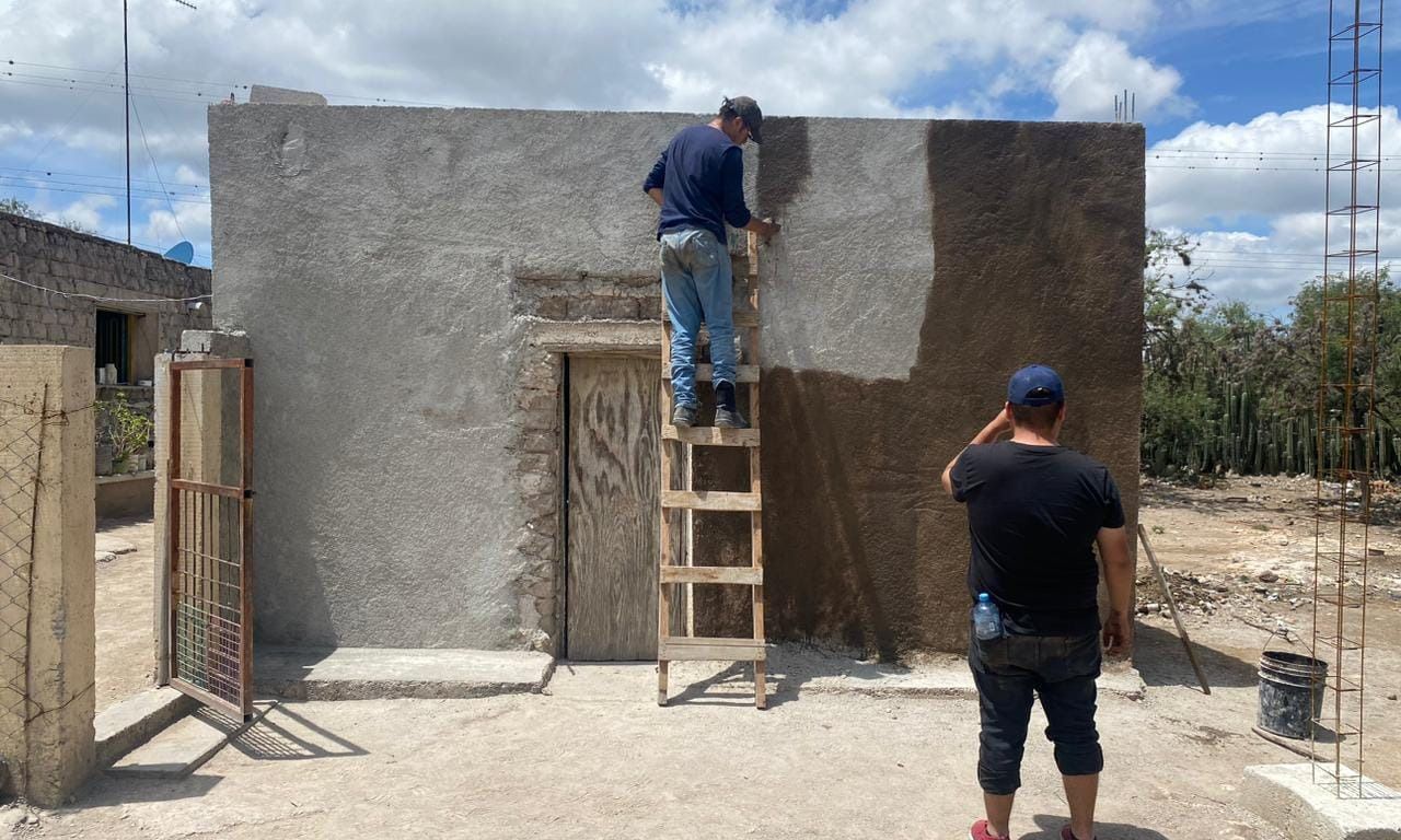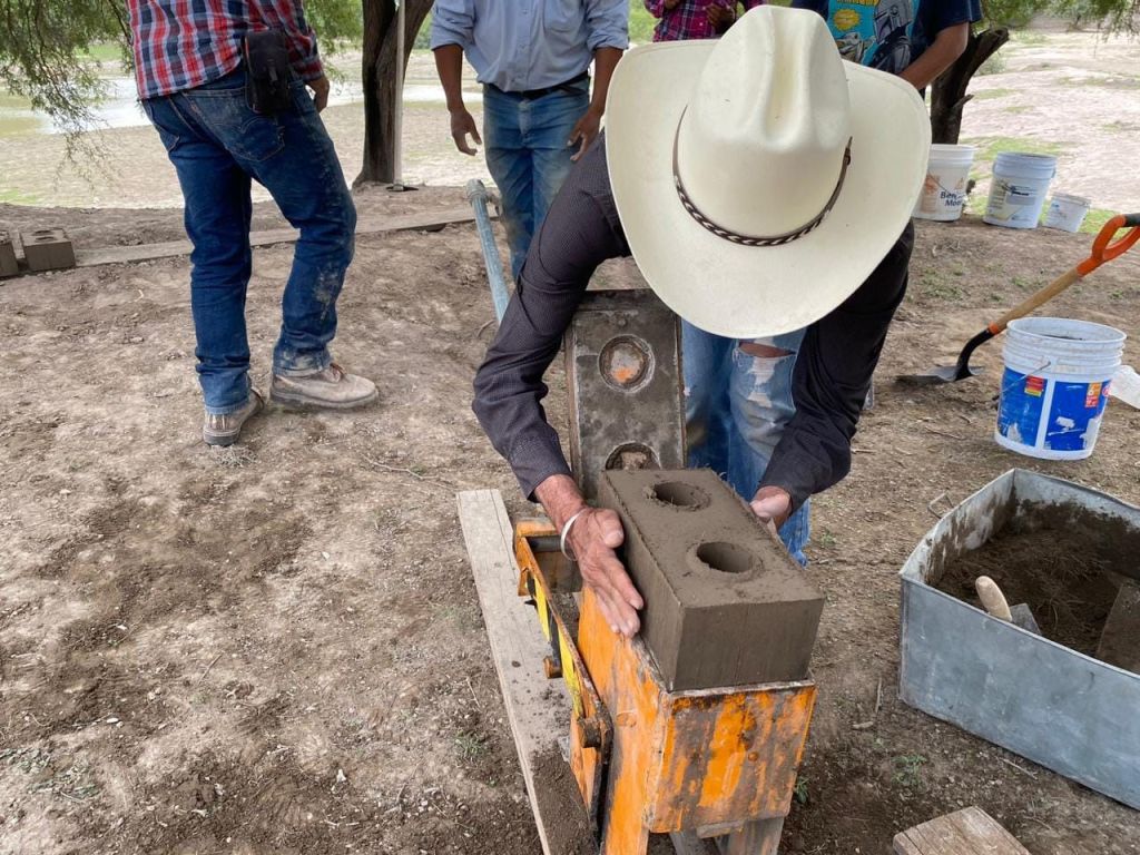 El estudiante de octavo semestre mencionó que como parte de esta colaboración se realizaron diversos talleres, uno de estos fue el de Aplicación de block. Para la elaboración de este material se requiere agua para fabricar adobe, afortunadamente se contó con una máquina de prensa manual útil para compactar la tierra de los bancos de arena, dejando secar durante dos semanas.