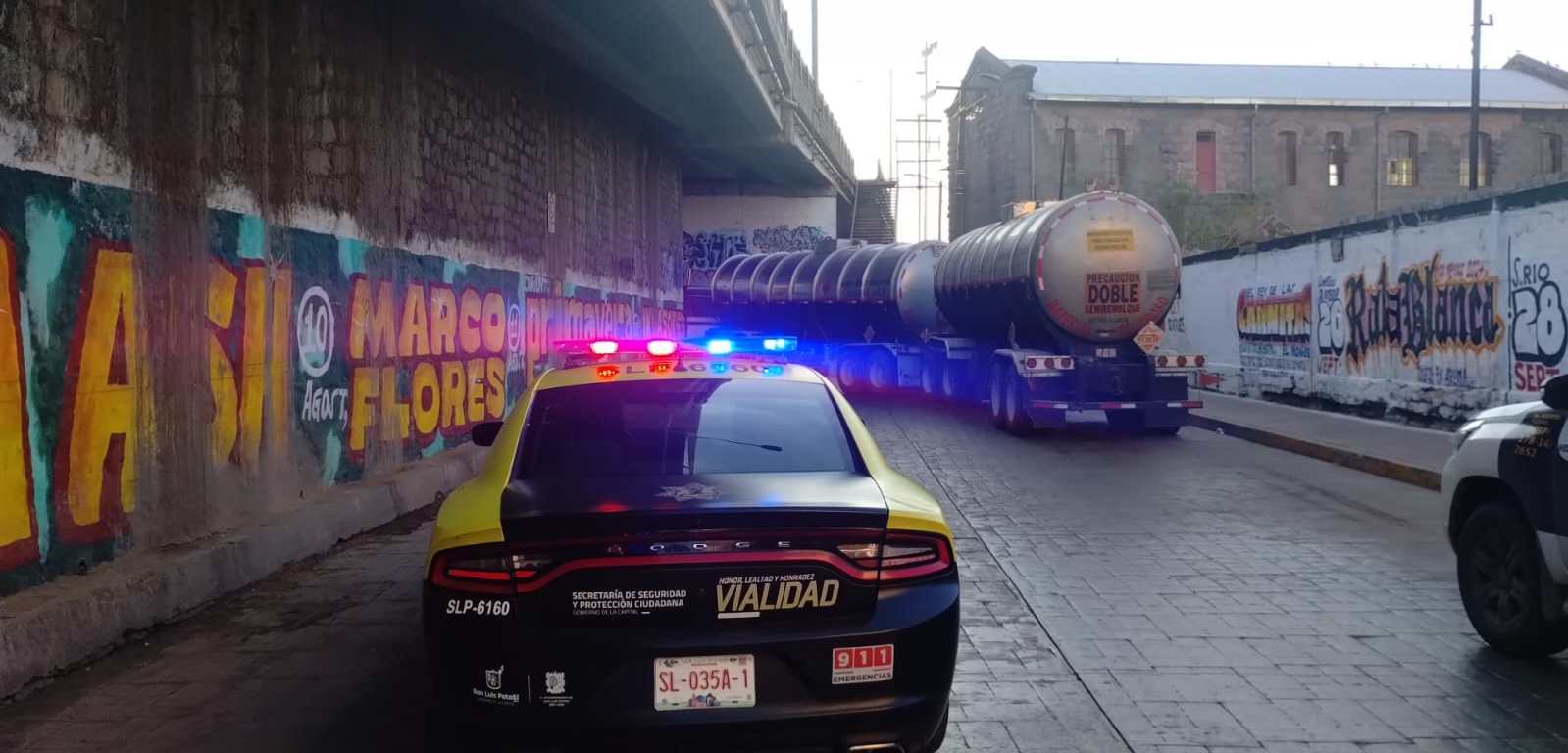 De acuerdo con el reporte, cerca de las 6:30 horas de este jueves, oficiales de Policía Vial adscritos al cuadrante centro tuvieron contacto con una unidad marca Kenworth color negro con blanco tipo tractor con dos pipas acopladas, el cual se encontraba abandonado y obstaculizando el tránsito de vehículos.