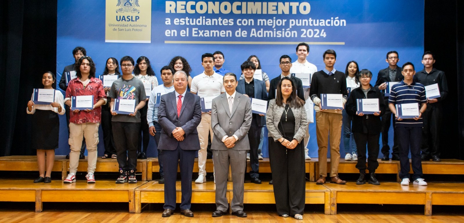 Con un llamado a defender y ejercer con responsabilidad ese gran valor que es la autonomía, este día el rector de la Universidad Autónoma de San Luis Potosí, doctor Alejandro Javier Zermeño Guerra, encabezó la ceremonia de entrega de reconocimientos a 20 estudiantes de facultades, campus foráneos y de la Escuela Preparatoria de Matehuala, que lograron la mejor puntuación en el Examen de Admisión 2024.