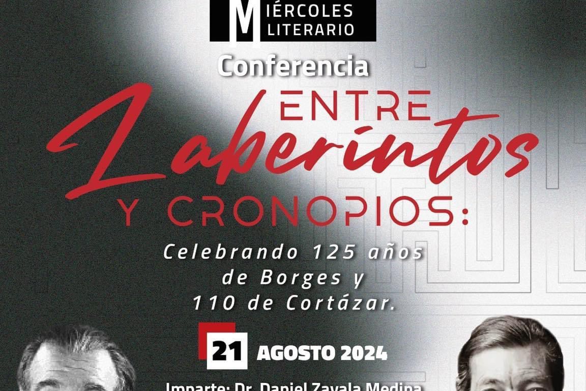 “Entre laberintos y cronopios” es el título de la conferencia que la dirección de Cultura del gobierno municipal de San Luis Capital ofrece este miércoles 21 de agosto a la comunidad potosina, como un escalón que apunta a la celebración y difusión de la riqueza literaria universal, pero esta vez en el marco de una ocasión muy especial, el natalicio de dos gigantes del Boom Latinoamericano: Jorge Luis Borges y Julio Cortázar.