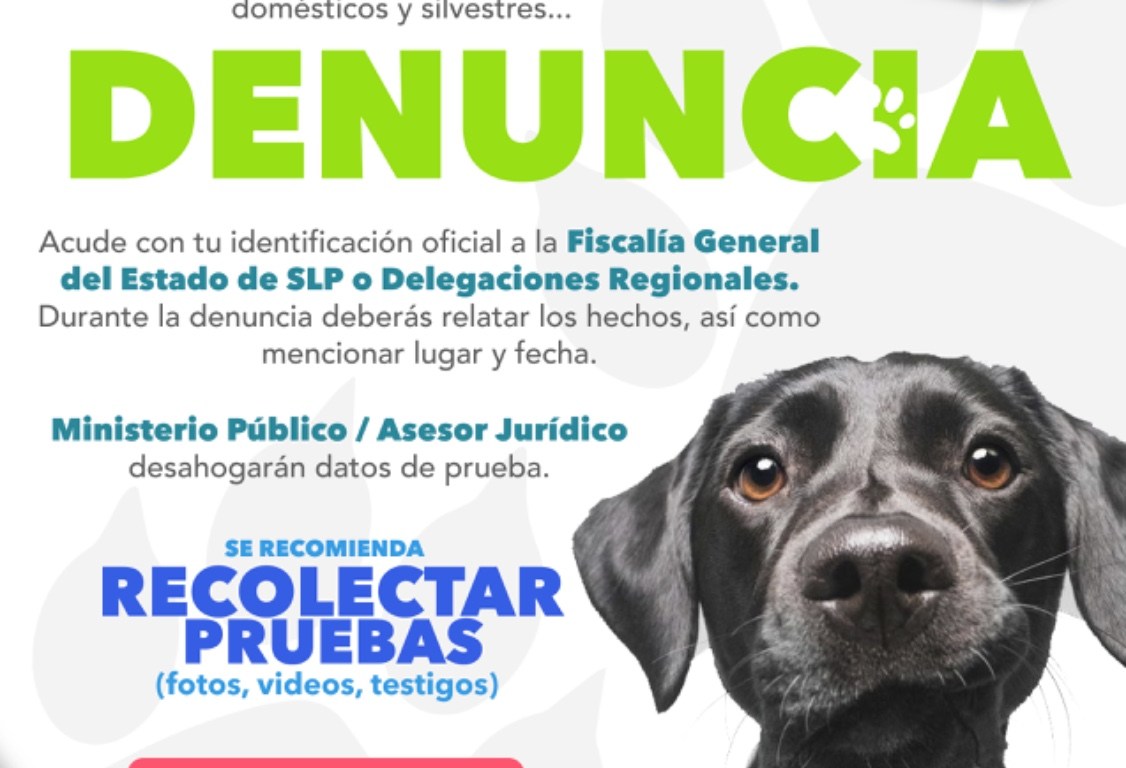 La FGESLP exhorta a la ciudadanía a denunciar cualquier forma de maltrato o robo que afecte a animales domésticos o silvestres.