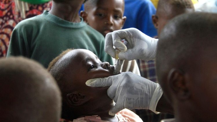 Un niño sudanés recibe gotas durante una campaña de respuesta a la epidemia de poliomielitis en el estado de Gedaref, en el este de Sudán, el 19 de agosto de 2024. (AFP or licensors)