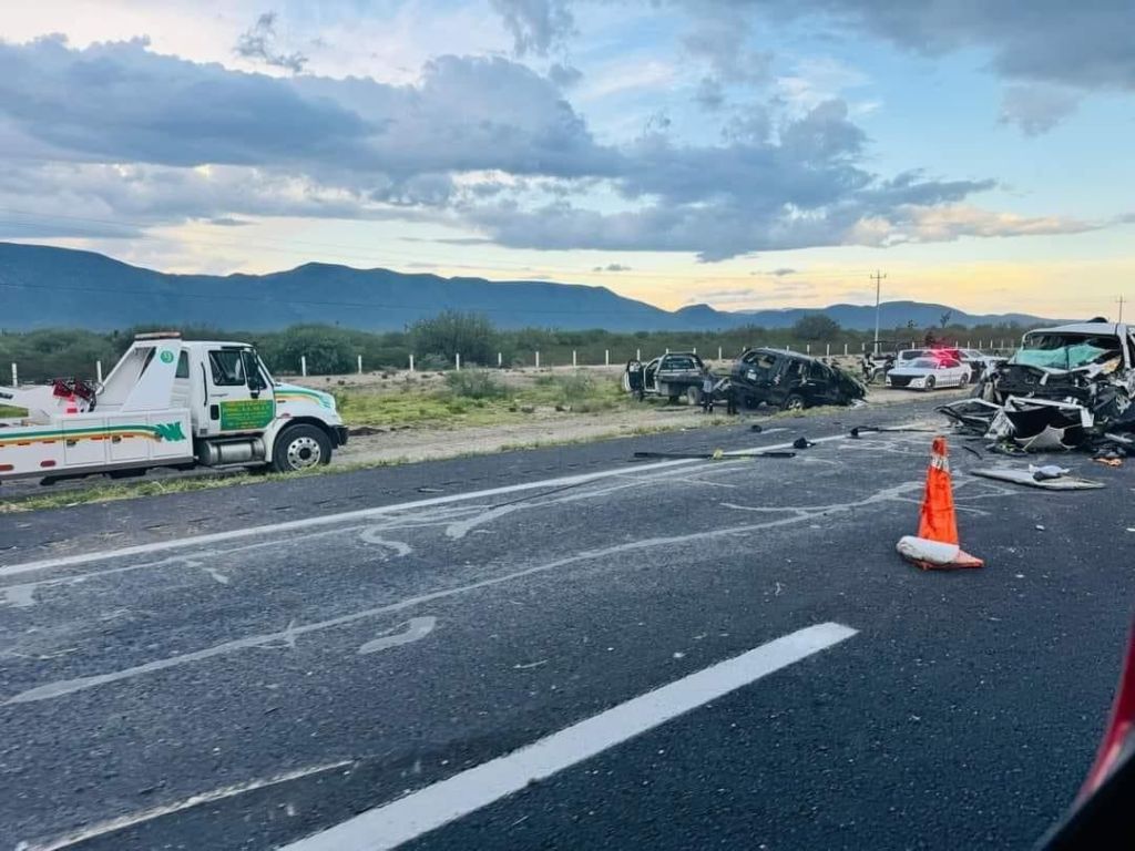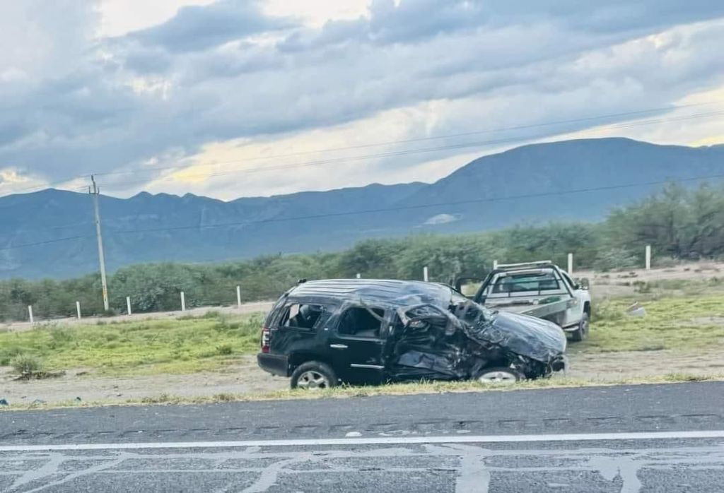 El día de ayer jueves se registró un grave choque y volcadura de una camioneta tipo suburban con placas del Estado de Texas y un vehículo sedan Nissan tipo Versa que circulaba de sur a norte, en la Carretera Federal 57, a la altura del km 145, tramo San Luis Potosí – Matehuala.