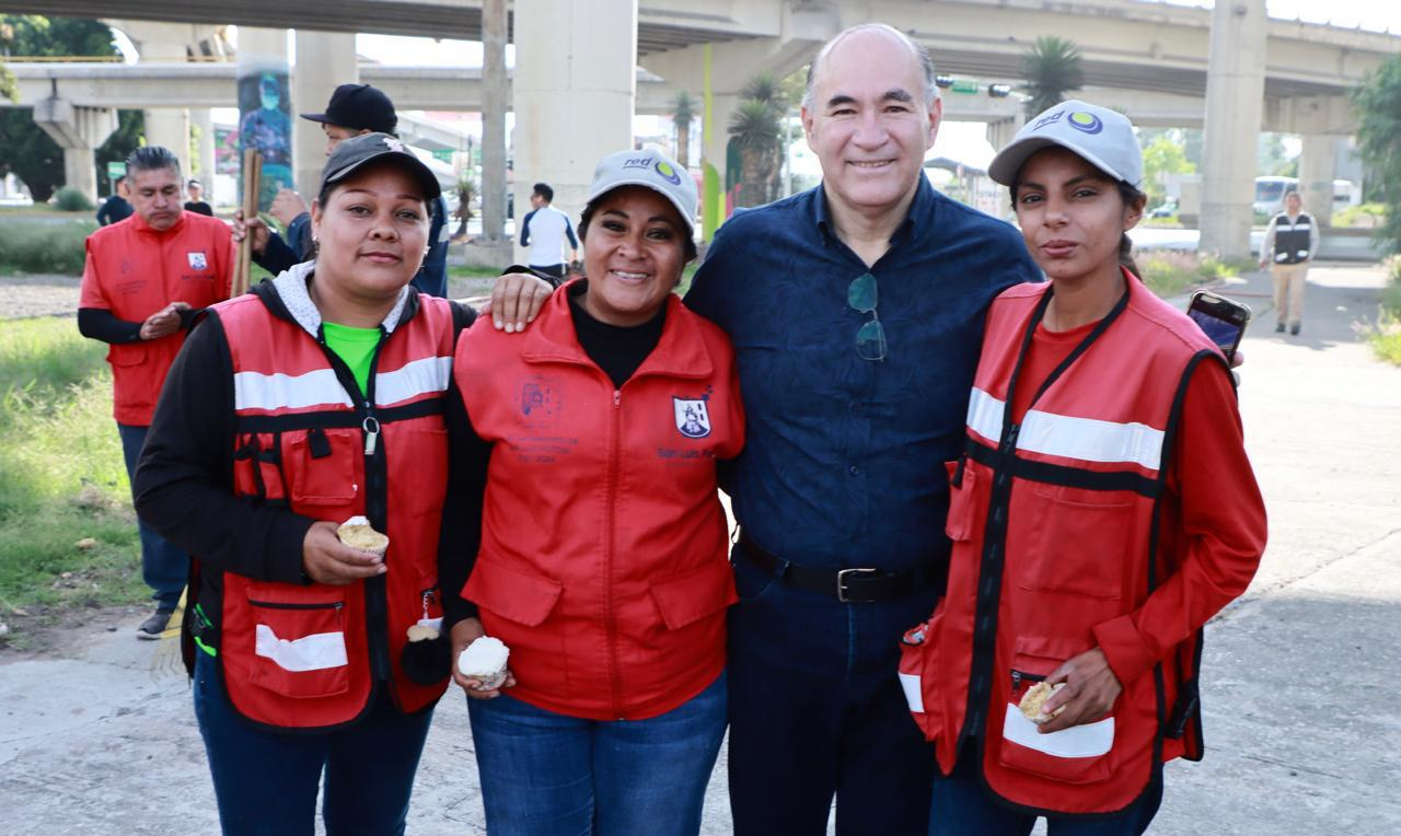 Para regresar el esplendor a la Glorieta Juárez, el Alcalde de San Luis Capital, Enrique Galindo Ceballos, dio inicio a las acciones del “Día de Talacha” en esta zona, en la que confluyen importantes rutas viales.