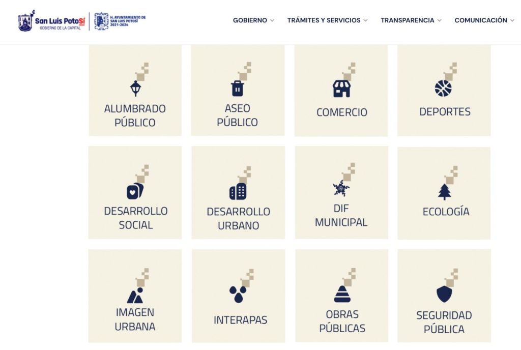 Otra manera de contactar a las autoridades municipales es accediendo a la página oficial: https://sitio.sanluis.gob.mx/SanLuisPotoSi/, en donde encontrará un listado de cada una de las dependencias a las que se les puede hacer una denuncia, un reporte, pero igualmente, gestionar estímulos institucionales.