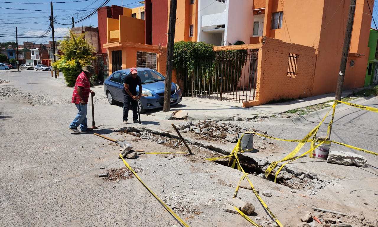 En el punto se hizo visible la aparición de un hundimiento en el pavimento entre las calles de Manuel Herrera y Ambrosio Ramírez donde personal de Interapas detectó un colapso por el taponamiento de la tubería de aguas usadas, además de malos olores en la zona.