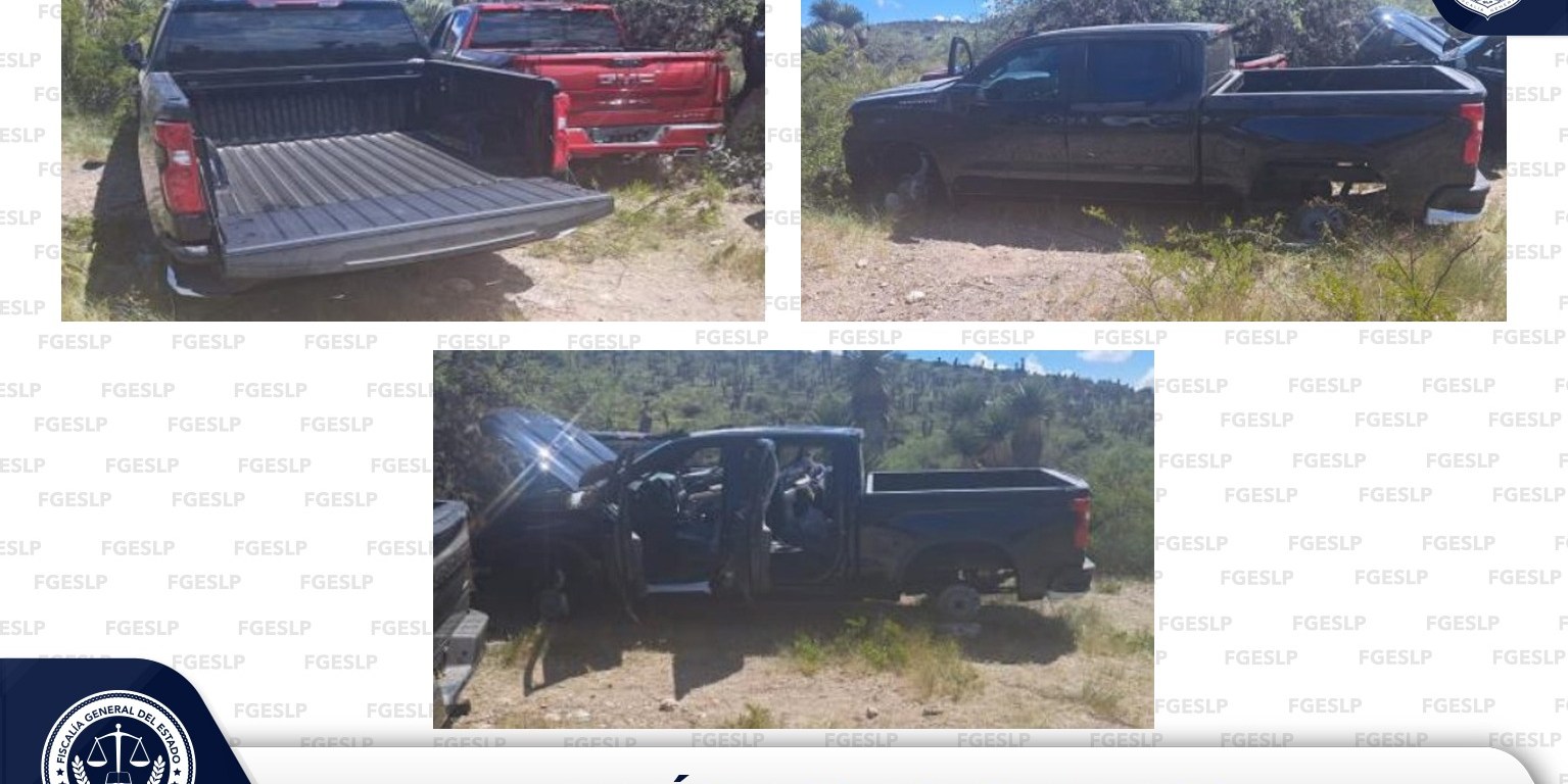 Los automotores marca General Motors, tipo Pick Up, modelos 2024, fueron asegurados por los agentes, quienes los pusieron a disposición de la Fiscalía General del Estado de San Luis Potosí (FGESLP).