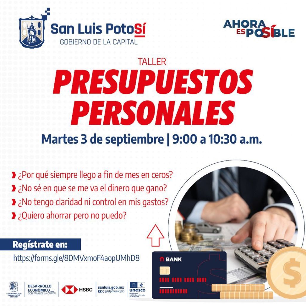 Para tener un mejor control de tu presupuesto y aprender técnicas para generar un ahorro que te permita tener solvencia ante imprevistos, la Dirección de Desarrollo Económico del Ayuntamiento de la Capital te invita al Taller de Presupuestos Personales que se llevará a cabo este martes 3 de septiembre.