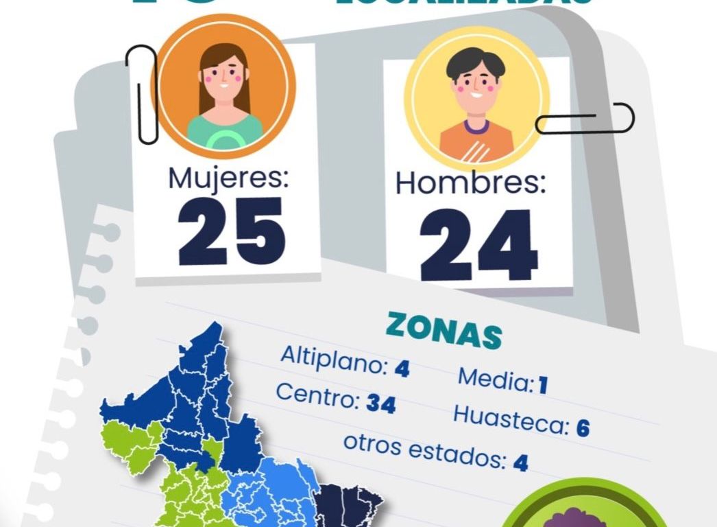 Durante agosto de 2024, la Fiscalía General del Estado de San Luis Potosí (FGESLP) localizó a 49 personas, de las cuales 25 son mujeres y 24 hombres, todos con fichas de búsqueda en la entidad potosina.