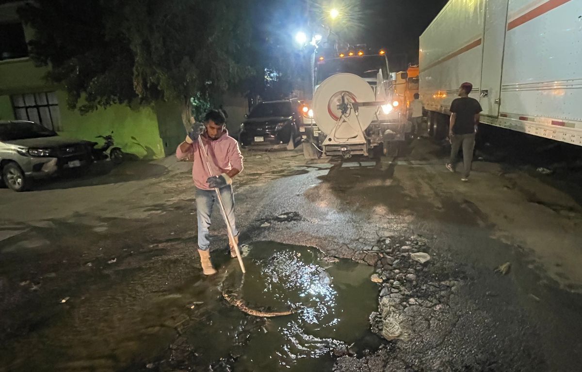 Para evitar un problema de salud a vecinos de Lomas de Satélite, Interapas realizó limpieza nocturna en calles donde se reportaron presencia de aguas negras.