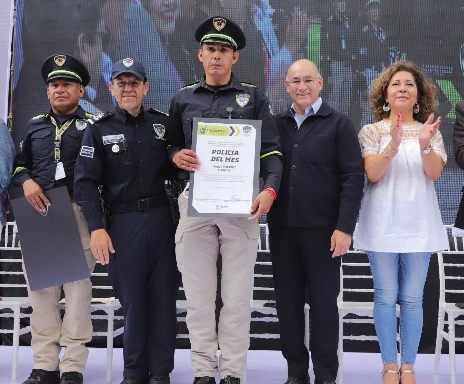 En la entrega de reconocimientos a los policías con mejor desempeño, el Jefe del Gobierno de la Capital afirmó que el fortalecimiento de la Policía Municipal se inició con la exaltación al nivel de Secretaría, la formación profesional, las mejoras en salarios y prestaciones y la entrega de estímulos económicos al policía del mes y al grupo más destacado, además del de Policía del Año, lo que ha generado una sana competencia al interior de la corporación.