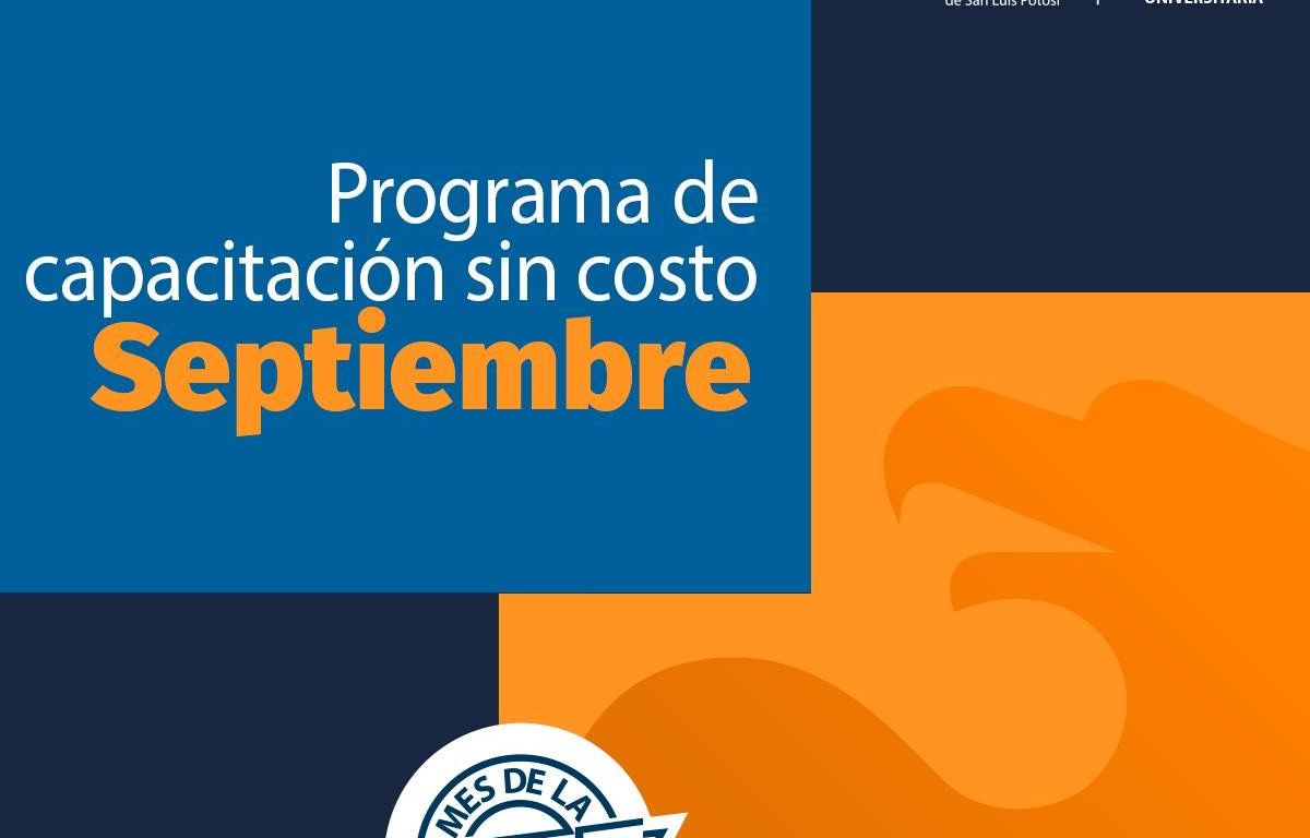 En el marco de Septiembre, Mes de la Universidad Autónoma de San Luis Potosí (UASLP), la institución ofrecerá, a través de la Secretaría de Vinculación Social Universitaria, un programa de capacitación gratuito con enfoque laboral y empresarial, dirigido a tanto a su comunidad como al público en general, el cual será impartido de forma virtual y presencial.