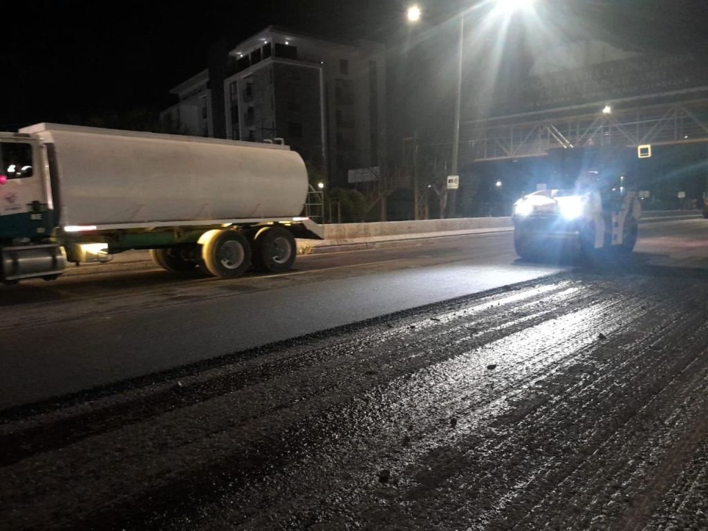 Además, continúan trabajos con base hidráulica en: Calle Sol, 1era. y 2da Privada de Sol, en Rural Atlas 3ª. sección; 3ª. Privada de Las Morenas, Las Morenas; y Av. Anillo Periférico, tramo de Periférico Norte a Av. Democracia.