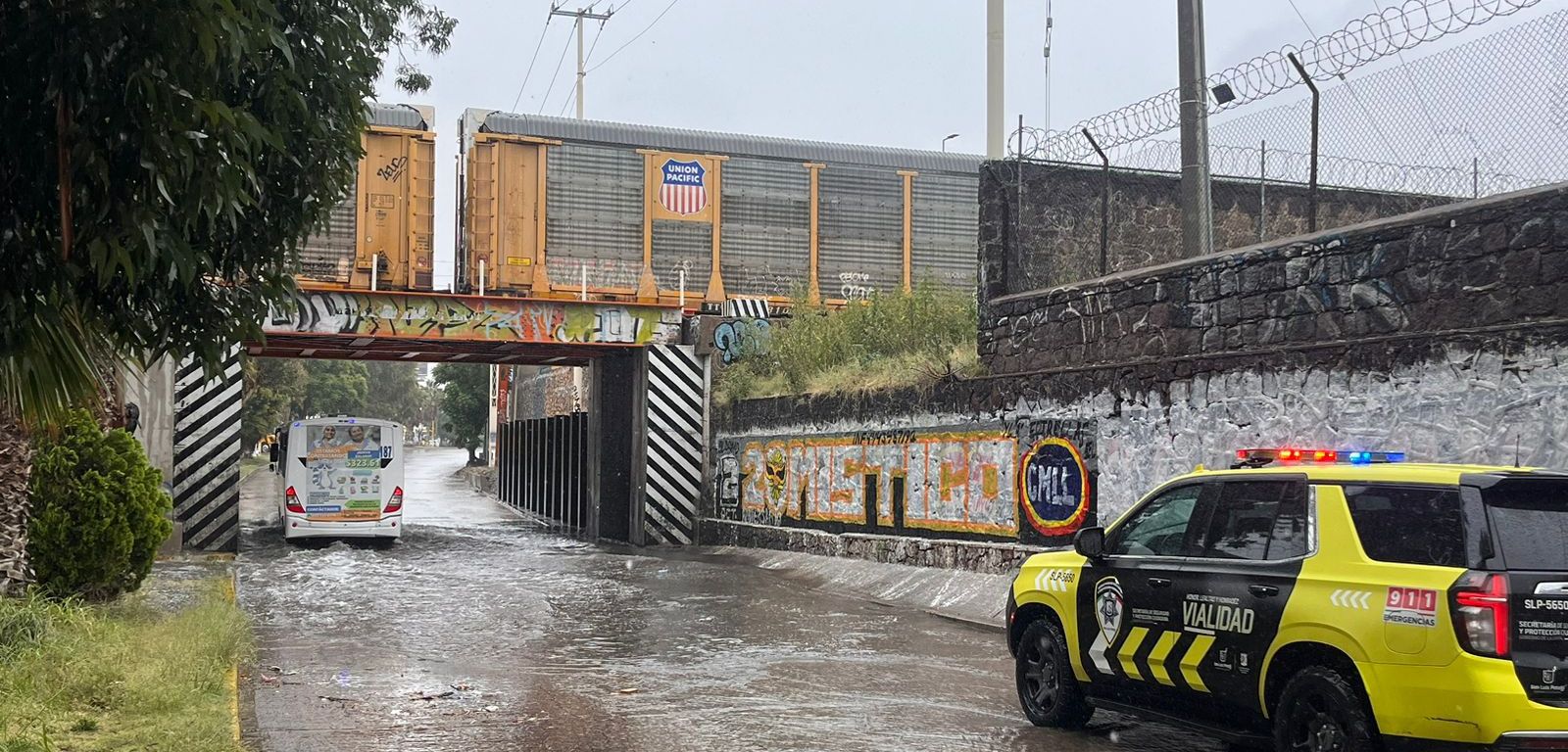 Se informó que se iniciaron los patrullajes desde las primeras horas de este viernes en los principales corredores viales de la ciudad, que ya presentaban encharcamientos, y a las 8:40 se aplicó el primer cierre vehicular en el desnivel de Plaza San Luis.