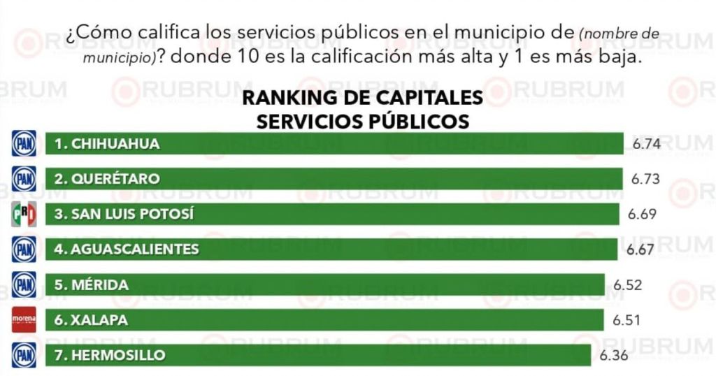 En cuanto a los servicios públicos municipales, San Luis Potosí se posicionó en el tercer lugar, destacando el progreso logrado durante los primeros tres años de la administración de Enrique Galindo Ceballos, con acciones para garantizar el abasto de agua en los hogares, eficientizar la recolección de residuos y la regeneración de las Vialidades Potosinas.