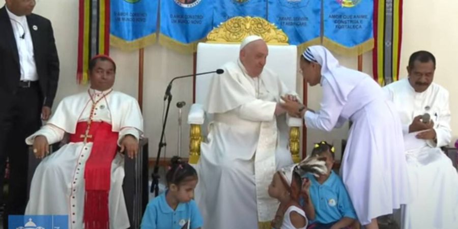 El Santo Padre llegó esta mañana a la escuela “Irmãs Alma”, en la que un grupo de religiosas católicas atienden a niños con discapacidad.