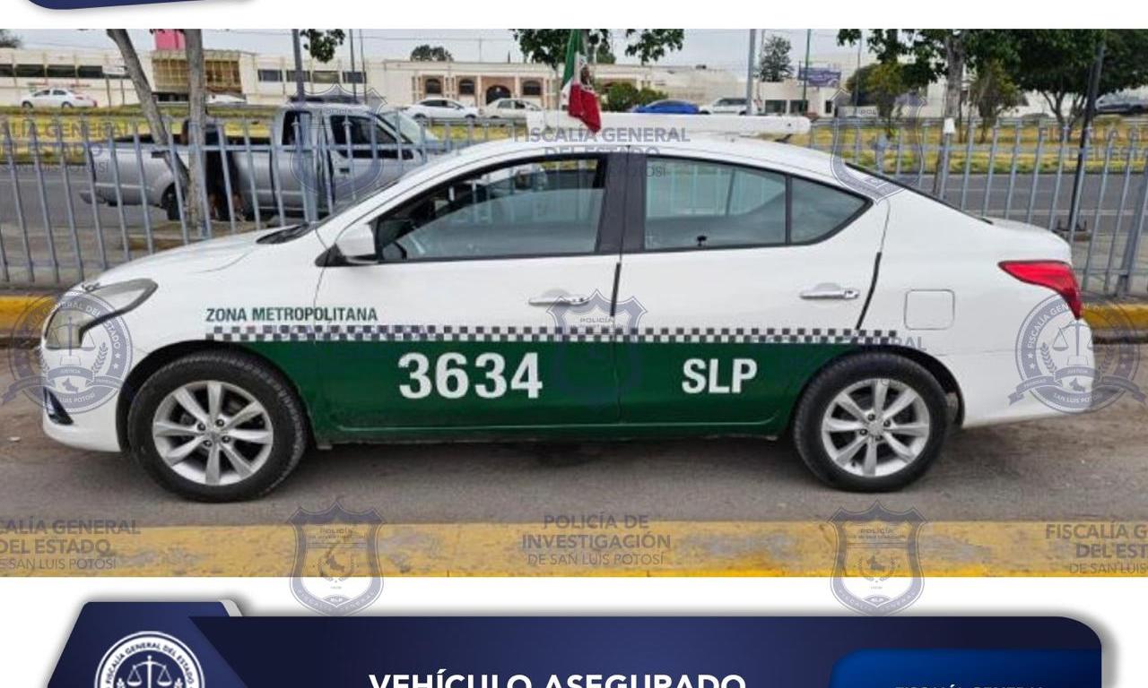 Este sujeto fue detenido en el estacionamiento de la Terminal Terrestre Potosina (TTP), a bordo de un vehículo marca Nissan tipo Versa modelo 2015 color verde y blanco habilitado como Taxi.
