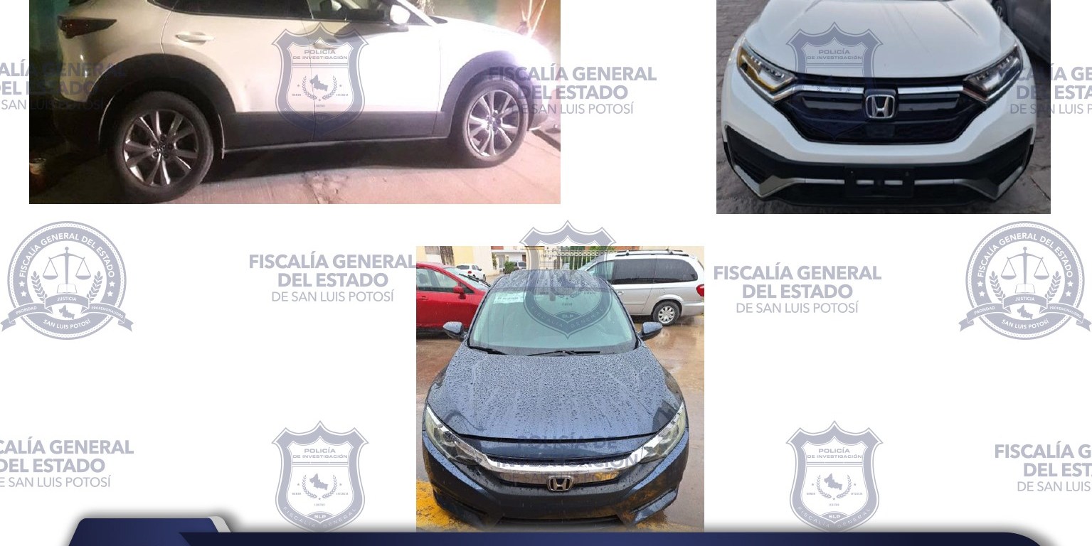 La Fiscalía General del Estado de San Luis Potosí (FGESLP) a través de los elementos de la Policía de Investigación (PDI), logró el aseguramiento de tres vehículos que cuentan reporte de robo en otros estados.