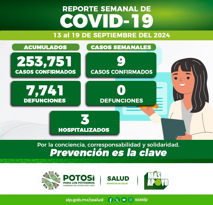 Del 13 al 19 de septiembre, se confirmaron nueve casos nuevos por Covid-19 y ninguna defunción.