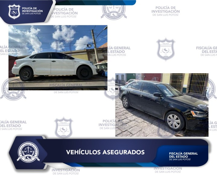 Los vehículos asegurados son un Volkswagen Vento de color blanco y un Volkswagen Jetta color negro, ambos sin placas.