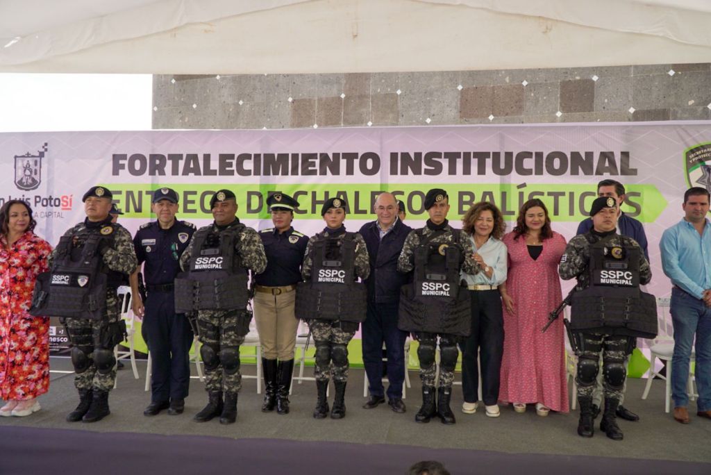 Con una inversión de 9 millones de pesos, la Secretaría de Seguridad y Protección Ciudadana (SSPC) del Ayuntamiento de San Luis Potosí ha dotado a los elementos de los grupos especiales con chalecos balísticos de alta calidad, que cumplen con las normas internacionales de seguridad. Este significativo apoyo fue entregado por el Alcalde Enrique Galindo Ceballos en una ceremonia efectuada este viernes 20 de septiembre en el edificio central de la corporación.