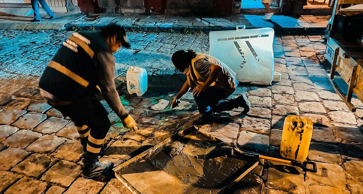 Afirmó que, ante los constantes requerimientos, la Cuadrilla de Respuesta Inmediata en los últimos días se ha trabajado en el bacheo nocturno para reparar las superficies de adoquín, concreto o asfalto por las noches, mientras la población descansa.