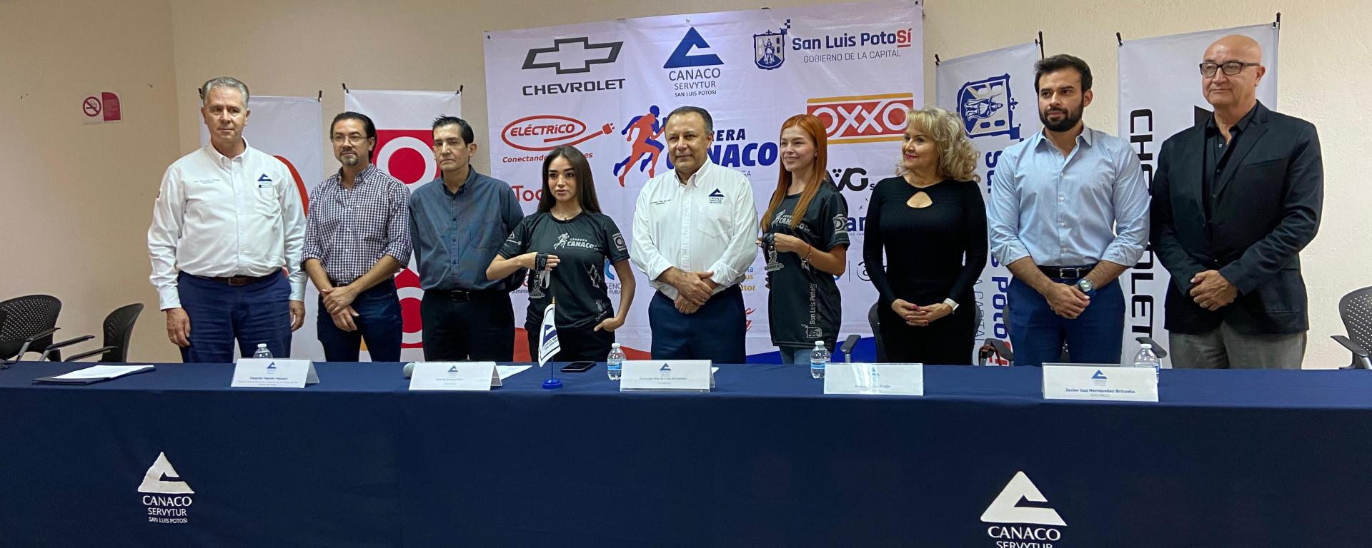La Cámara Nacional de Comercio, Servicios y Turismo (Canaco-Servytur) presentó este miércoles la edición número XXV de la Carrera Atlética Canaco 2024 con causa al Asilo y Comedor de los Pobres de San Antonio de Padua, que se llevará a cabo el próximo domingo 06 de octubre a las 8:00 horas al interior del Parque Tangamanga I.