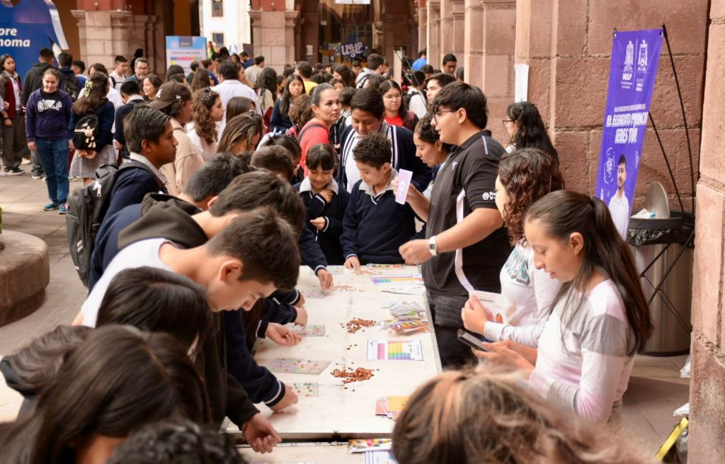 Este jueves 26 de septiembre, la Universidad Autónoma de San Luis Potosí (UASLP) llevó a cabo la Feria de Ciencia UASLP 2024 en instalaciones del Edificio Central, lugar al que arribaron desde temprana hora cientos de estudiantes de diversos niveles educativos, quienes participaron en experimentos y recorrieron los stands de los grupos de divulgación de la institución.