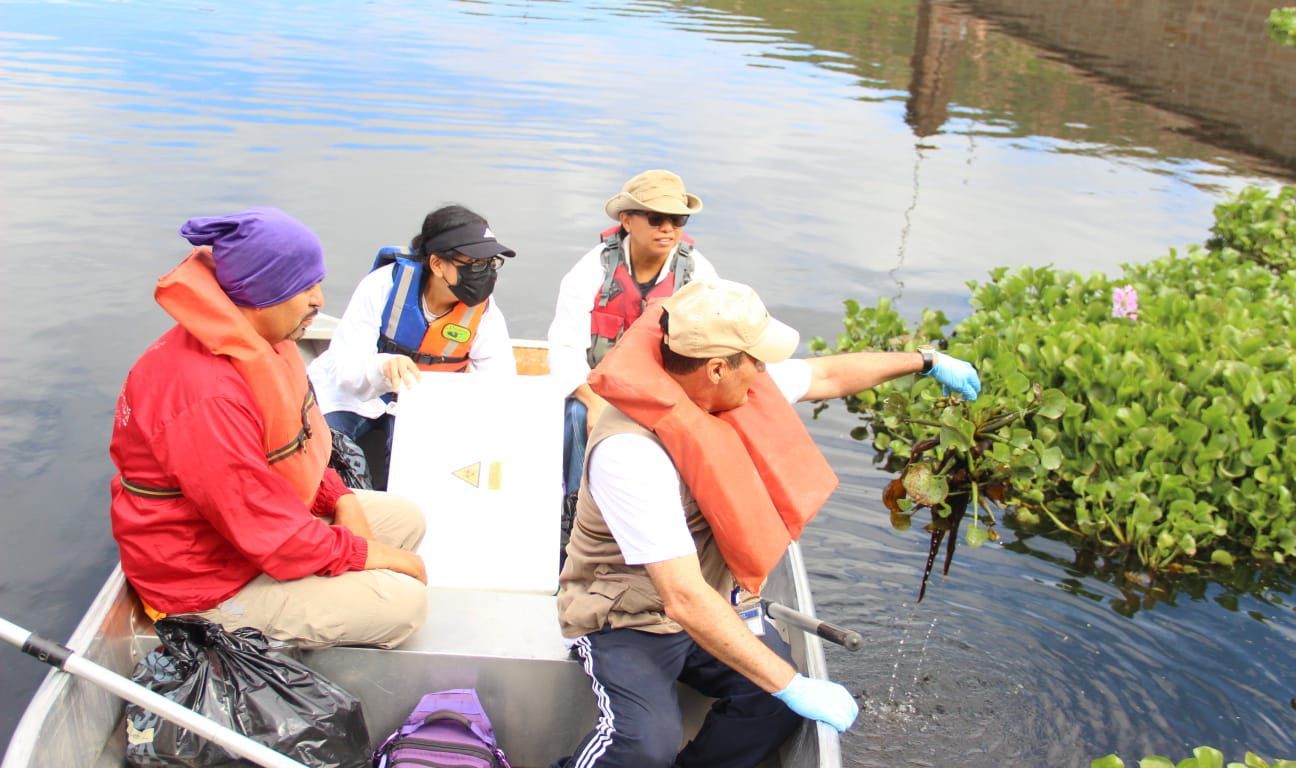 Especialistas buscan conocer características muy particulares de esta planta invasiva en este cuerpo de agua; apoyan en estas acciones la Dirección de Gestión Ecológica y la SSPC mediante Protección Civil.