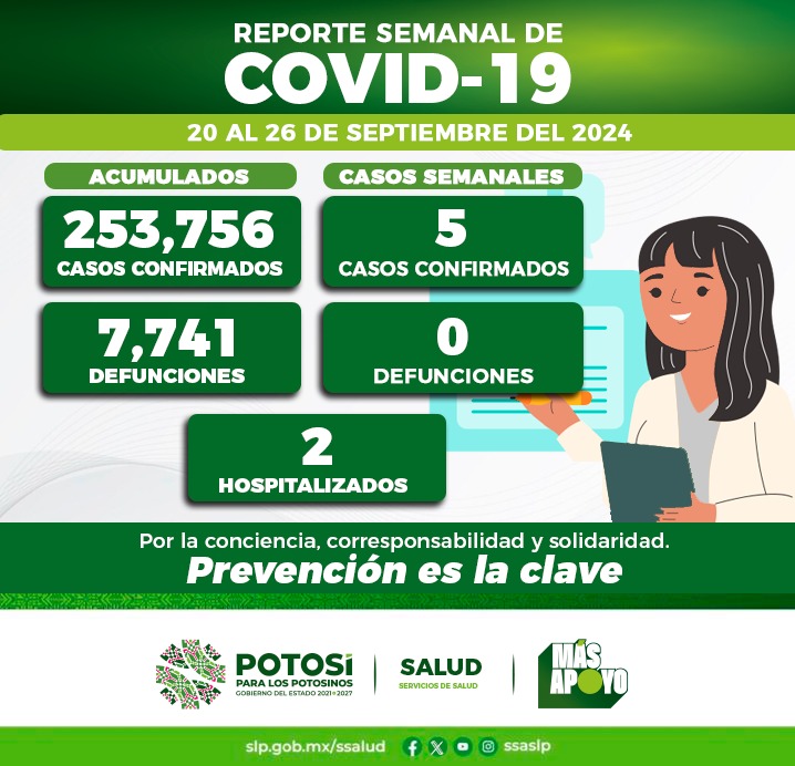 Del 20 al 26 de septiembre de 2024, se han registrado cinco nuevos casos por Covid-19 en la entidad.