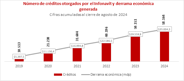 Solo de enero a agosto de este año, se otorgaron 8 mil 013 créditos, lo que representó una derrama económica por 5 mil 444.4 millones de pesos.