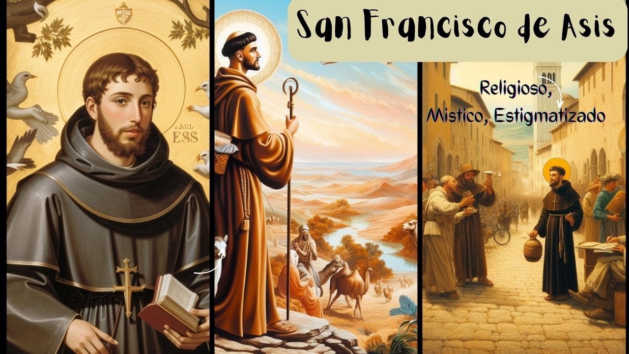 Nació en Asís (Italia), en el año 1182. Después de una juventud disipada en diversiones, se convirtió, renunció a los bienes paternos y se entregó de lleno a Dios. Abrazó la pobreza y vivió una vida evangélica, predicando a todos el amor de Dios. Dio a sus seguidores unas sabias normas, que luego fueron aprobadas por la Santa Sede. Fundó una Orden de frailes y su primera seguidora mujer, Santa Clara que funda las Clarisas, inspirada por El.