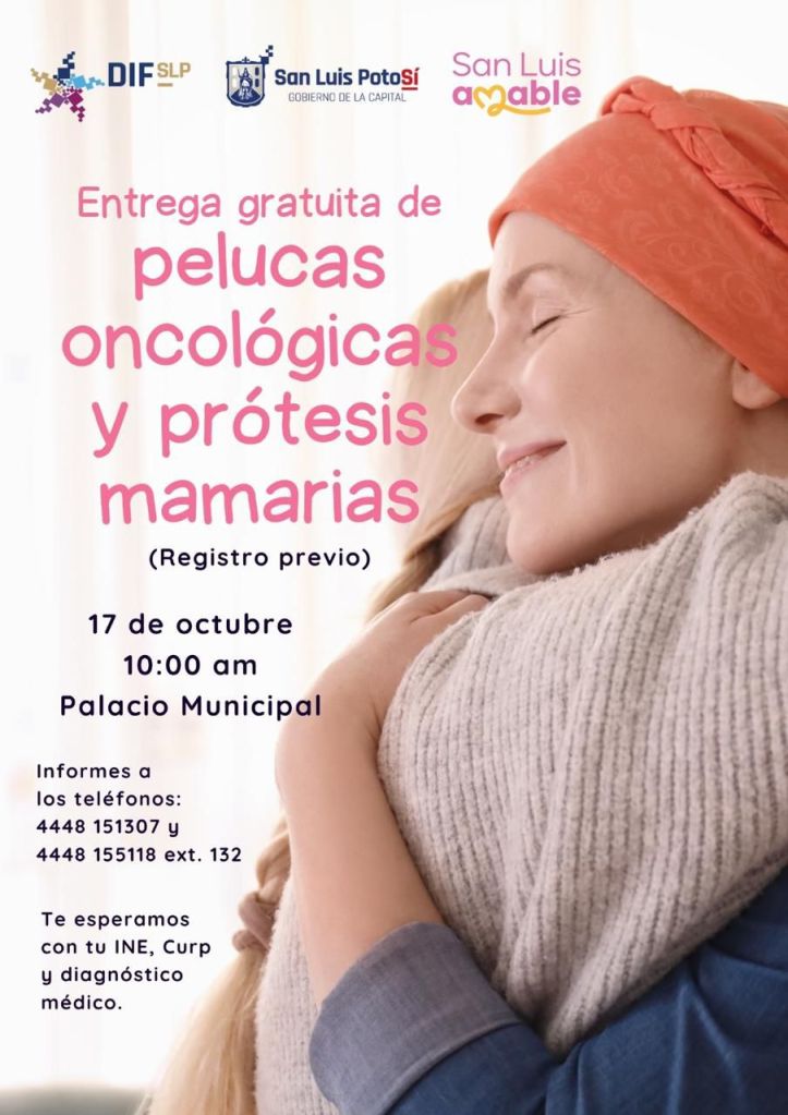 El DIF Municipal de San Luis Potosí, comprometido con la salud y el bienestar de las mujeres, invita a todas aquellas que han enfrentado el cáncer de mama a registrarse para recibir pelucas oncológicas y prótesis mamarias sin costo.