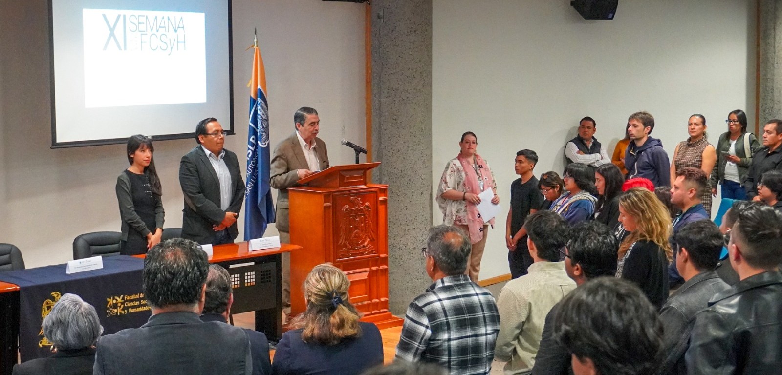 A su vez, la directora de la Facultad de Ciencias Sociales y Humanidades, la doctora Gabriela Torres Montero, dio a conocer que la semana académica es organizada por las y los consejeros alumnos con el acompañamiento de docentes. Destacó que tiene tres características relevantes; la primera que se mantiene como eje central, es el diálogo entre disciplinas para revisar problemas complejos de las realidades actuales, como la búsqueda de las personas desaparecidas, la migración, la violencia de niñas y niños, la elaboración de diagnósticos comunitarios, las campañas de salud, entre otros.