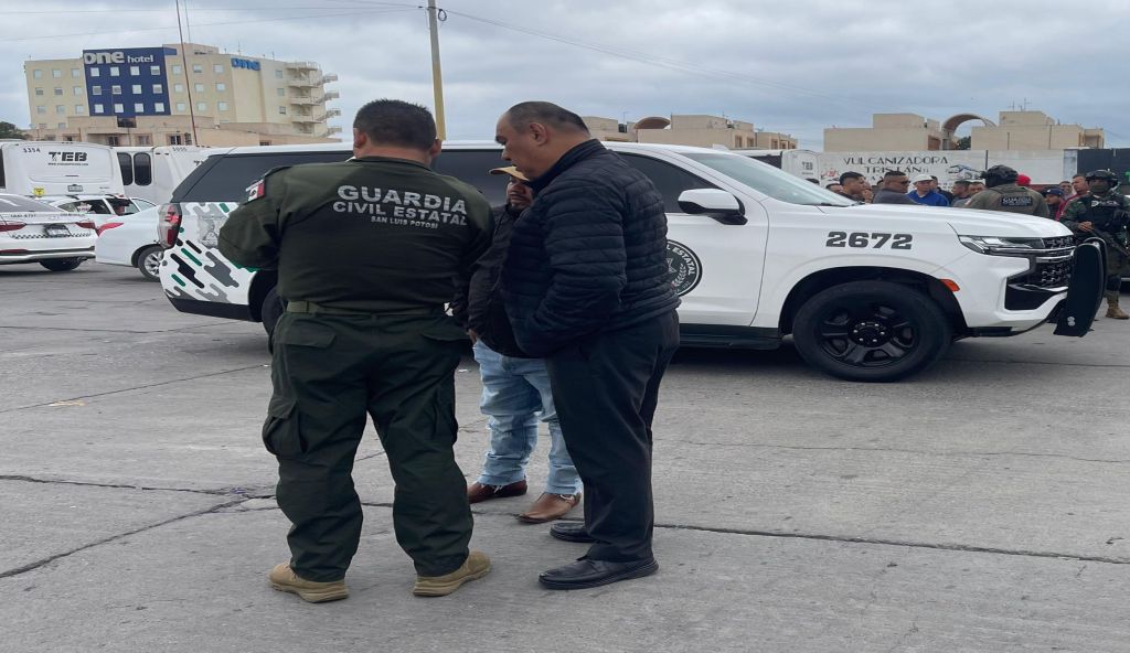 Por lo anterior, se procedió al arresto de varias personas y fue cuando la unidad policial de la Guardia Civil Estatal se dirigía a la Comandancia Central cuando otros taxistas le cierran el paso tratando de obstruir la labor de los oficiales y así evitar la detención.