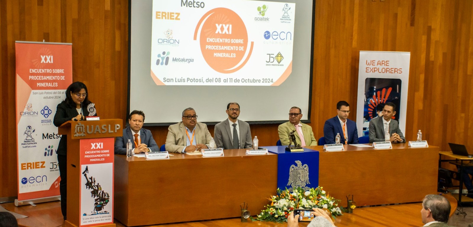 En el presidium de la ceremonia de inauguración estuvieron el M.C. Javier Muñoz Quintana, director general de Desarrollo y Promoción Minera del Gobierno del Estado de San Luis Potosí, en representación del Mtro. Jesús Salvador González Martínez, titular de la Secretaría de Desarrollo Económico; el Ing. Eammon Guitard, director de ventas de Norteamérica de Syensqo, así como el Ing. José Godínez, gerente de Planta Atequiza Jalisco y el Ing. Héctor Torres Vargas, gerente de ventas México de la misma empresa, además del doctor Roel Cruz Gaona, director del Instituto de Metalurgia de la UASLP y coorganizador del evento.