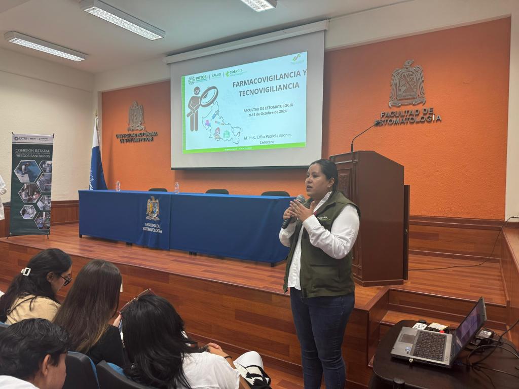 En apoyo a la formación de profesionistas del área de la salud y con la finalidad de garantizar que los servicios odontológicos que se ofertan sean de calidad y sin riesgos sanitarios, los Servicios de Salud de San Luis Potosí a través de la Comisión Estatal de Protección Contra Riesgos Sanitarios (COEPRIS), realizaron la capacitación en “Normatividad Sanitaria para la Prestación de Servicios Odontológicos” a alumnos del quinto al noveno semestre de la Facultad de Estomatología de la UASLP.