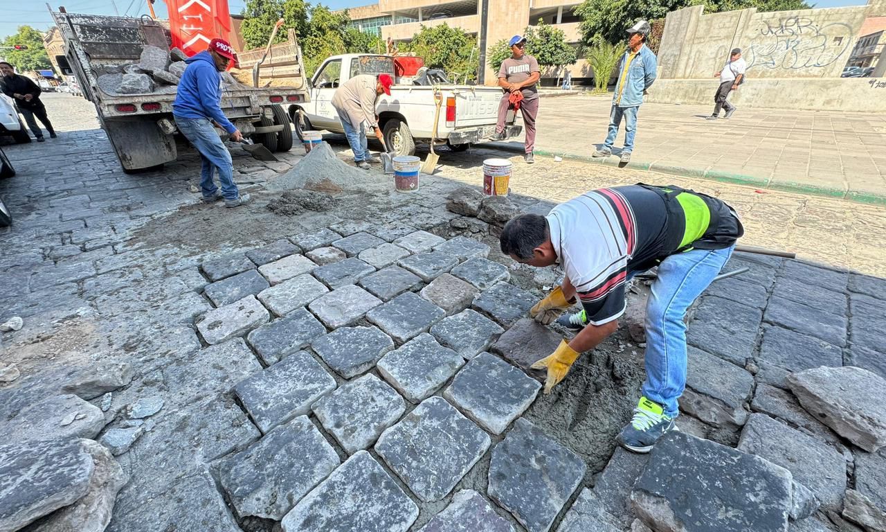 Estas acciones las lleva a cabo el personal de la Dirección de Obras Públicas, que repondrá 35 adoquines, por lo que se requiere de un trabajo manual para su colocación y de esta manera pueda quedar estable la superficie en beneficio de la movilidad de quienes transiten por esta zona.