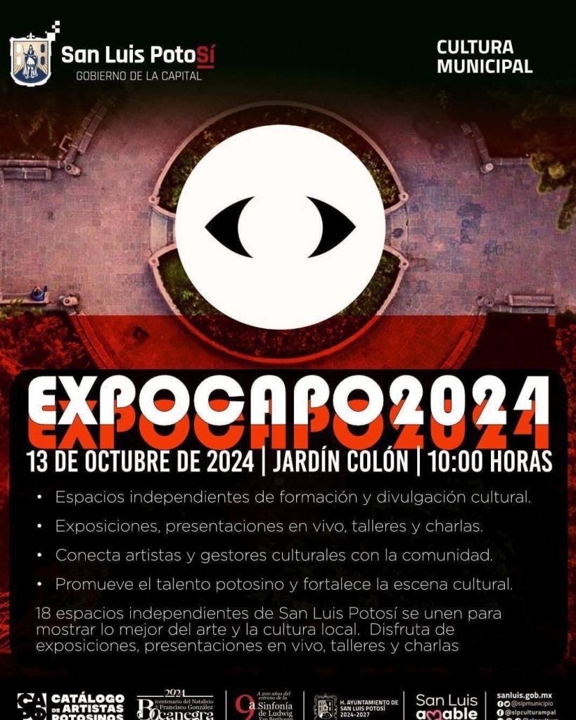 Daniel García Álvarez de La Llera, Director de Cultura Municipal, destacó que esta edición de la Expo Capo ofrecerá una plataforma para descubrir y conectar con el talento local. «La Expo Capo 2024 es un evento que reunirá a los espacios independientes de formación y divulgación cultural de San Luis Potosí. Con un enfoque en la promoción de servicios, talleres y agendas, buscamos conectar a artistas y gestores con la comunidad a través de exposiciones, presentaciones en vivo, talleres interactivos y charlas», mencionó García Álvarez de La Llera.