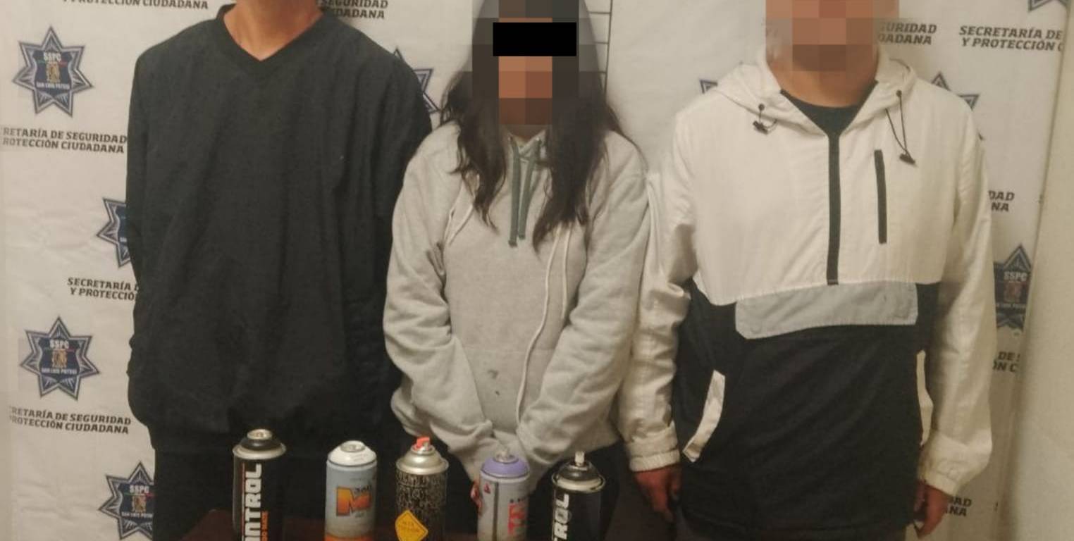 De esta manera los agentes municipales efectuaron la detención en flagrancia de los tres participantes quienes portaban un total de cinco latas de pintura en aerosol.