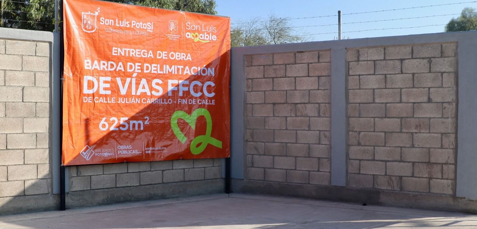 En cumplimiento de los compromisos del Ayuntamiento de San Luis Capital, que encabeza el Alcalde Enrique Galindo Ceballos, este martes autoridades municipales entregaron la obra de la barda perimetral en las colonias Misión de Santiago y Villas Vicenza, para brindar mayor seguridad a las familias que habitan en colindancia con las vías del ferrocarril al norte de la ciudad, que eran objeto de hechos delictivos y de vandalismo.