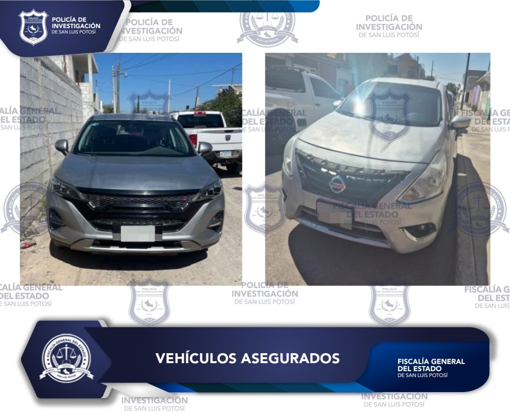 La Policía de Investigación (PDI) de la Fiscalía General del Estado de San Luis Potosí (FGESLP) aseguró dos unidades automotoras que contaban con reporte de robo en la entidad.