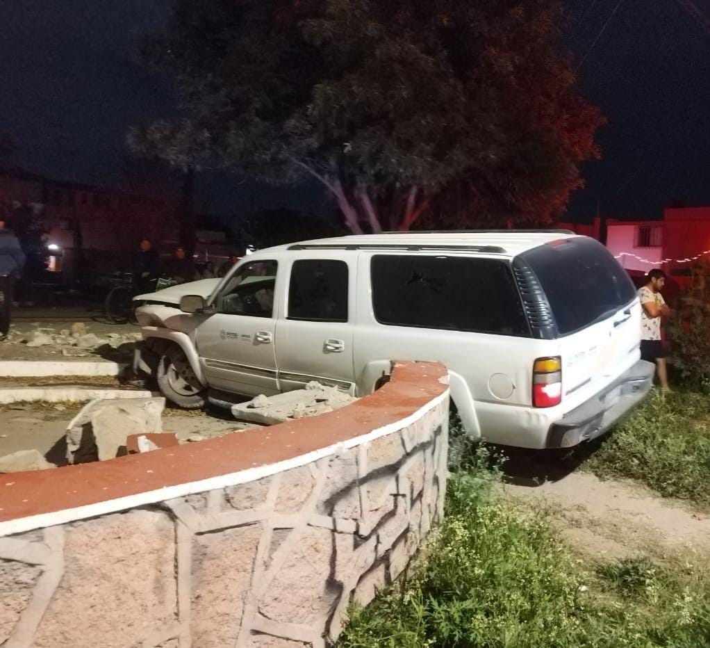 De acuerdo al reporte de la jefatura de hechos de tránsito terrestre de la SSPC, cerca de las 23:30 horas de este martes, se acudió al reporte de un choque en la avenida Prolongación Muñoz y calle del Chopo de la colonia Jacarandas, donde se encontró una vagoneta marca Chevrolet Suburban color blanco con rótulos oficiales de gobierno estatal, cuyo conductor habia impactado contra el muro de mampostería de la glorieta de Jacarandas presuntamente tras la pérdida de control del volante.
