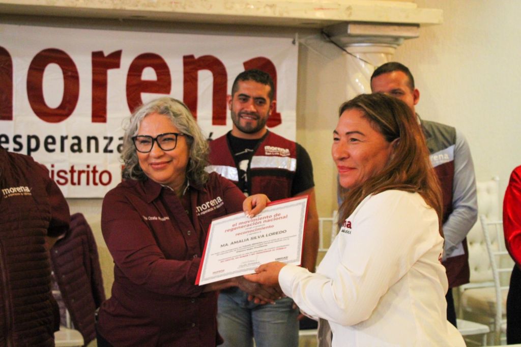 En entrega de reconocimientos a los Coordinadores Territoriales de Morena, firmados por la Presidenta de la República, la Dra. Claudia Sheinbaum Pardo, se destacó la dedicación y esfuerzo, quienes han trabajado incansablemente para consolidar el Segundo Piso de la Cuarta Transformación en San Luis Potosí. Este evento, celebrado en compañía de legisladores locales y miembros del Comité Ejecutivo Estatal de Morena, reconoció la importancia del trabajo territorial para asegurar la continuidad del proyecto transformador.