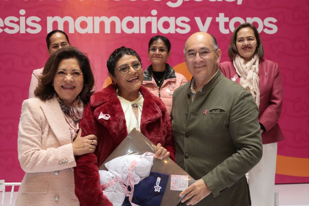 En el Marco del Día de Lucha contra el Cáncer, entregó junto con el Alcalde Enrique Galindo, pelucas oncológicas, prótesis mamarias, tops, turbantes y vales de mastografía.
